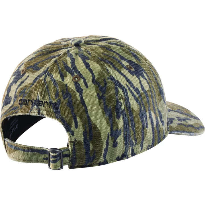 The Carhartt® durability legacy runs 130 years strong. This Men’s camo ball cap celebrates their workwear style with a logo patch. It features an odor-fighting sweatband inside for quick-drying comfort while you work or hunt.