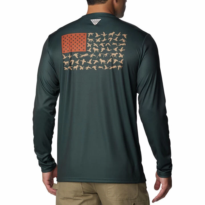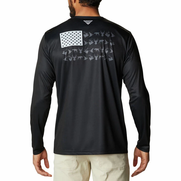 With built-in UPF 50, Columbia® Men’s PHG Terminal Shot™ Game Flag Long-Sleeve fish-themed shirt helps protect you from the harmful effects of the sun.