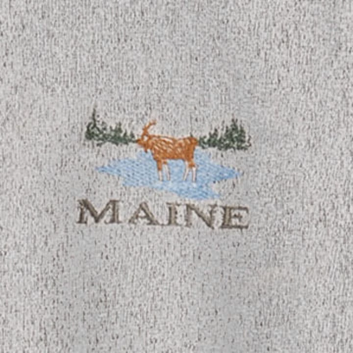- Design machine-embroidered “MAINE” and moose on upper left chest