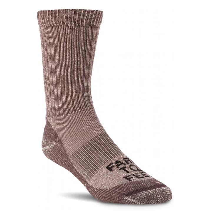 Farm to Feet® Men’s Boulder is a traditional hiking sock that has exactly what you need: durability, comfort, and all-season versatility. Outer plaiting construction gives it durability and that classic hiker look, while placing more body yarn next to the skin for improved wicking and insulation. Full-density padding along the instep and up the calf makes it comfortable to wear with lace-up hiking boots. Last but perhaps most important, 100% American-grown merino wool provides excellent thermal regulation and natural resistance to bacteria and odor build-up.