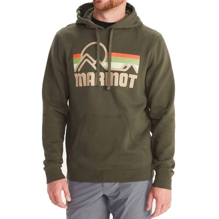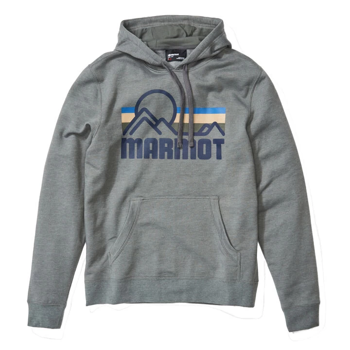 When the sun drops on your next outdoor trip, warm up and relax with Marmot® Men’s Coastal Pullover Hoody. The jersey fleece fabric is garment washed to feel extra soft. Adjustable drawcords at the hood and kangaroo pockets provide extra protection against chilly evenings. The screen printed graphic adds a casual, laid-back vibe.