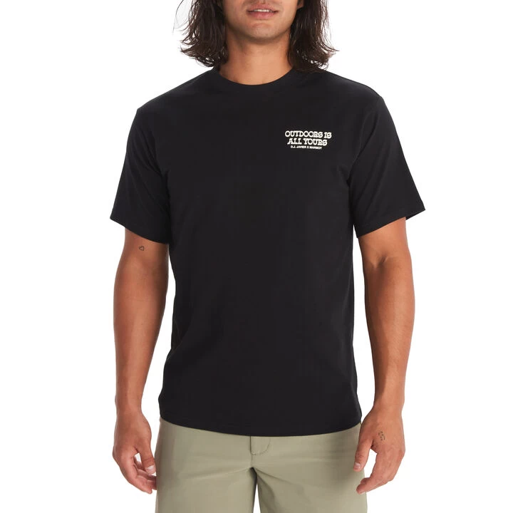 Marmot® Men’s Marmot x DJ Javier “Outdoors Is All Yours”. A collaborative design with artist and outdoor inclusivity activist, DJ Javier, this heavyweight T-shirt is a reminder that the outdoors is yours for the taking, no matter where you live, where you’re from, or where you’re headed. Mixing aspects of local, street, and outdoor culture, this sweatshirt symbolizes our collective commitment to making the outdoors a more welcoming and approachable space for all people to learn, explore, and enjoy. Whether you’re a first timer at the crag, a seasoned peak chaser, or a weekend camping warrior, this tee will keep you cozy for the warm up and the wind down.