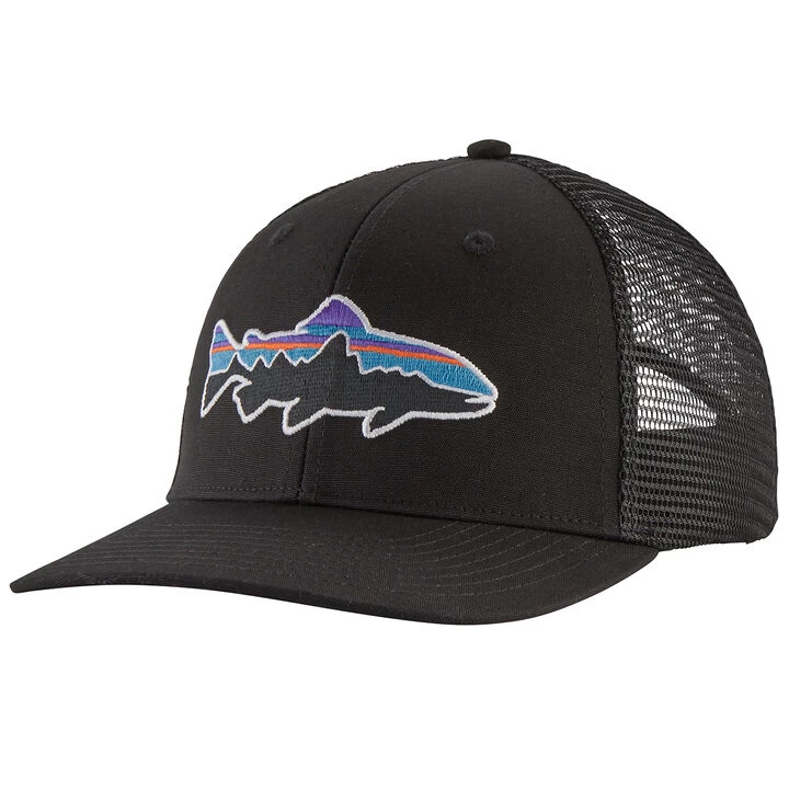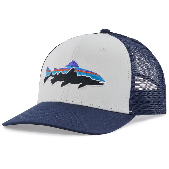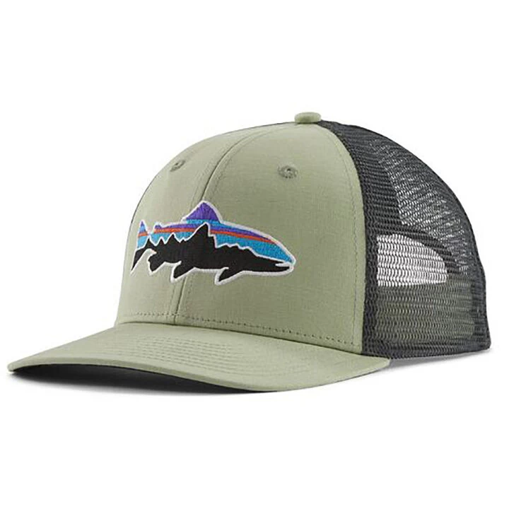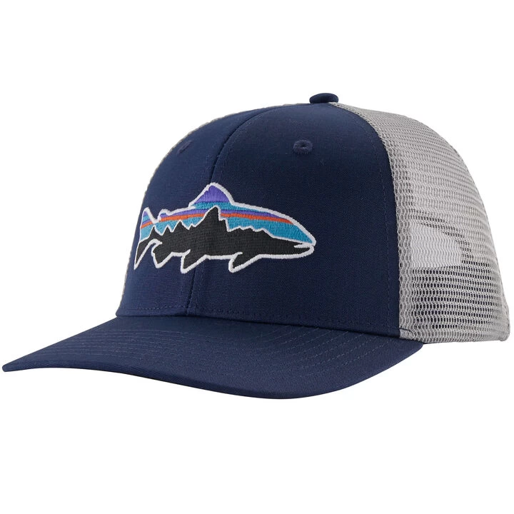Featuring a brim made of Buero’s fully traceable NetPlus™ materials, the Patagonia Men’s Fitz Roy Trout Trucker Hat features an Organic Cotton front, Recycled Polyester Mesh back and an adjustable snap closure.