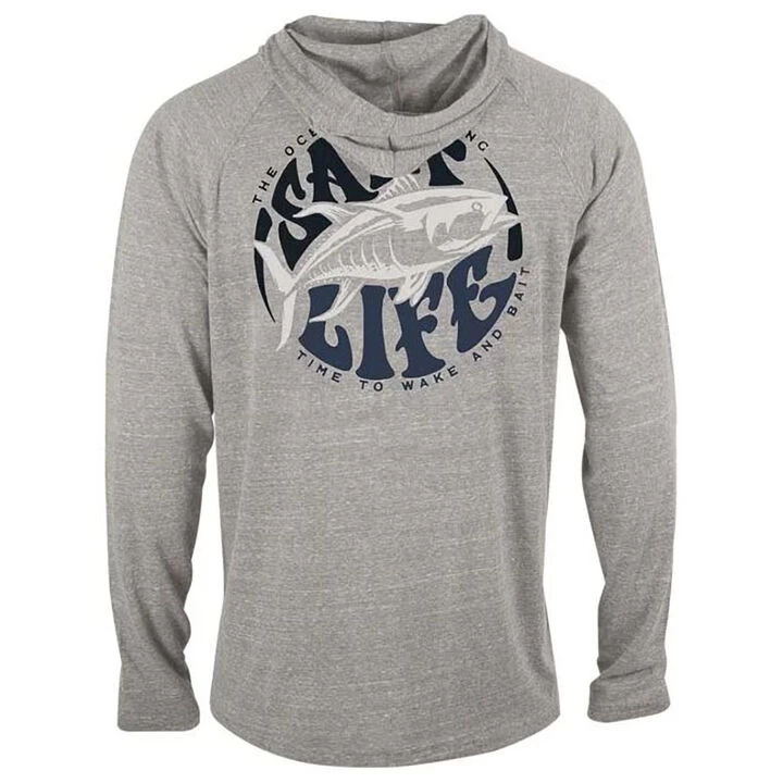 Salt Life Men’s Ocean Is Calling lightweight hoodie is sure to be a spring staple. This tri-blend pullover comes in multiple colors and features a front and back screen printed logo. Made from a Polyester, Cotton, and Rayon blend – this Salt Life® lightweight hoodie is perfect for cool nights.