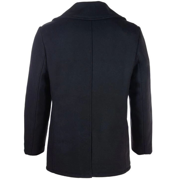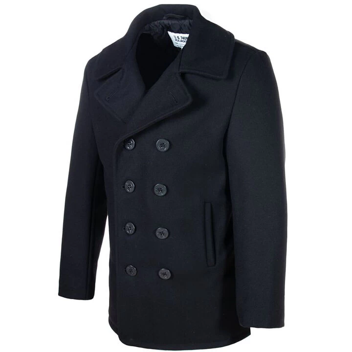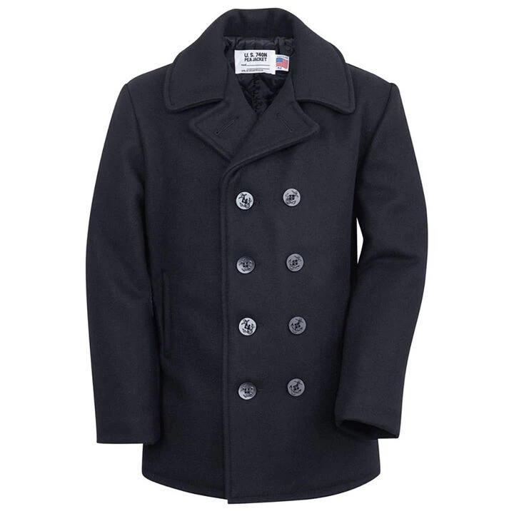 The US Navy Peacoat was adopted during the early 20th Century, from Britain’s Royal Navy Reefer Jacket. The Royal Navy’s first regulations for uniforms for other ranks were issued in 1857, a century after the regulations for officers and this garment was originally used by Midshipmen (Reefers). These crewmen had to climb the rigging and furl and unfurl, or ‘reef’, the sails of the sailing ships of the era. The jacket was short, to allow ease of movement through the rigging. It had a double-breasted front, which displaced the buttons to each side. This helped reduce the chance of them getting caught on ropes, as the wearer maneuvered the sails. The pockets were often close to vertical, and over the flanks, rather than horizontal and at wrist level. It was made of very heavy wool, in dark Navy Blue, with a nap on the face side.