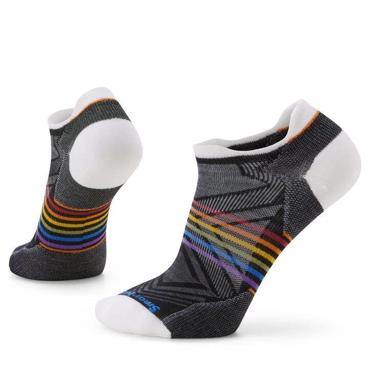 Hit your stride and show your pride with SmartWool® Men’s Run Zero Cushion Pride Rainbow Low Ankle Socks. These colorful run socks make a statement while going the distance with a vibrant rainbow print and advanced sock technologies. Featuring our Indestructawool™ technology with extended durability zones, mesh zones for added breathability, and a Virtually Seamless™ toe for enhanced comfort. Hit the ground running and show the community some love with these next-level Merino socks.