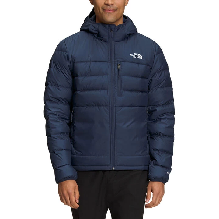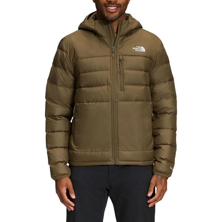 The updated North Face® Men’s classic 550 fill Goose Down Hoodie features side and shoulder panels with Heatseeker™ insulation and a DWR finish for reliable warmth.
