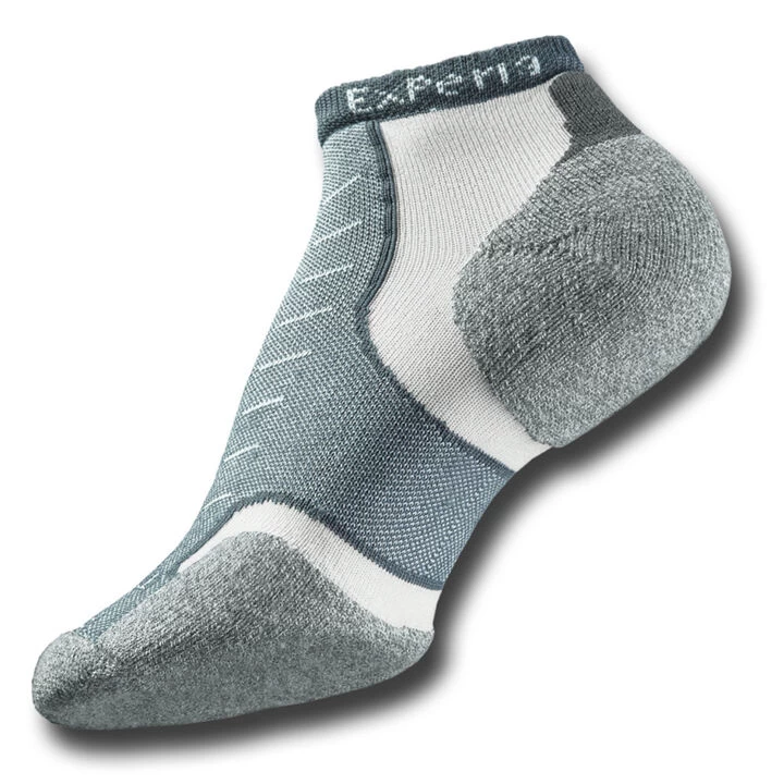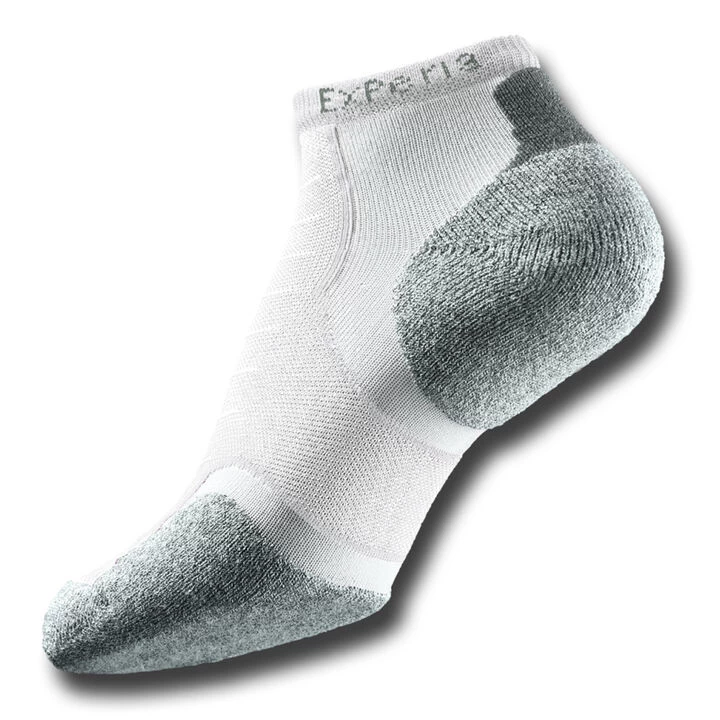 - Specially sculpted Thorlo® pads in the ball and heel provide protection from shear and impact where needed; all but most of the essential padding, significantly reducing the weight of the sock